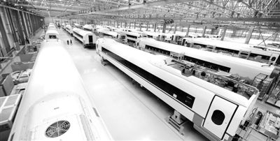 這是中國北車長客股份公司裝配車間內(nèi)待組裝的用于京滬高鐵線的CRH380BL新一代高速動車組(2011611日攝)。 新華社記者 王昊飛攝